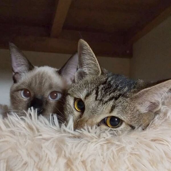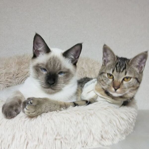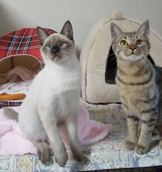 | 特徴(性格など) | ノミダニ駆除済み 検便駆虫済み ワクチン2回済み 血液検査済み(エイズ・白血病ともに陰性) 避妊去勢手術済み シャム系の蓮くんとキジトラの愛ちゃんの兄妹です。 とてもやんちゃで遊び盛りなので2匹でじゃれている姿を見ているだけでニヤニヤしてしまいます。 2匹ともとても甘えん坊さんでお膝やお腹の上に乗ってきます。構ってほしい時は愛ちゃんは後を追いかけてきてスリスリ、蓮くんは手や足をカプカプ甘噛みしてアピールします。 甘え声も可愛くて蓮くんは「ふにぁ~」、愛ちゃんは「ぴー」と鳴くので抱きしめたくなっちゃいますよ。 知らない人は最初は隠れるかもしれませんが、慣れるので大丈夫です。 ご家庭のアイドルとして迎えて頂けると嬉しいです。 2匹一緒だと嬉しいですが、1匹でも大丈夫です。 ネットが苦手な保護主に代わり代理で募集しております。(連絡先は下記記載) お問い合わせは下記の連絡先に「蓮くん愛ちゃんの件」とお問合せ下さいませ。 |