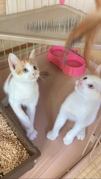 | 特徴(性格など) | 白薄茶(幸くん)&茶トラ白(福くん) 2匹ともやんちゃ盛り、可愛い盛り♪ よく食べ、よく遊び、よく寝て元気よく成長しています!ゴロゴロ喉をよく鳴らしてます。 |