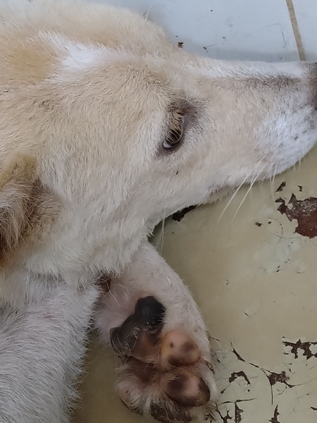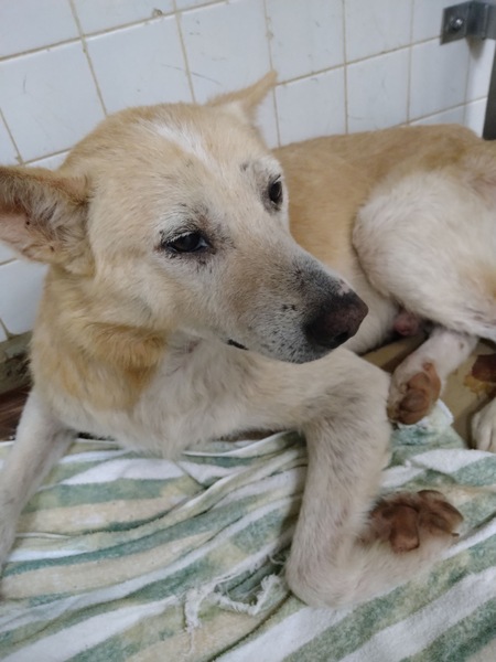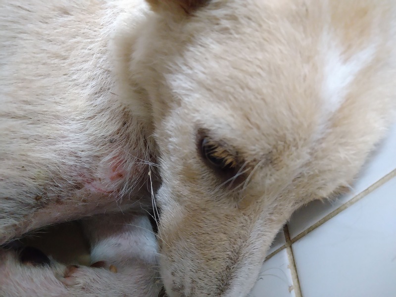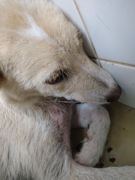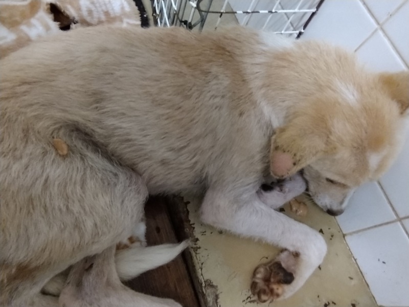 | 特徴(性格など) | 毛色は茶色、白色の女の子 あちこち皮膚病が見られます 毛並みも悪く痩せています 唸りも威嚇もありません ただただ怖くて怯えています |