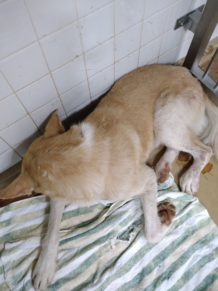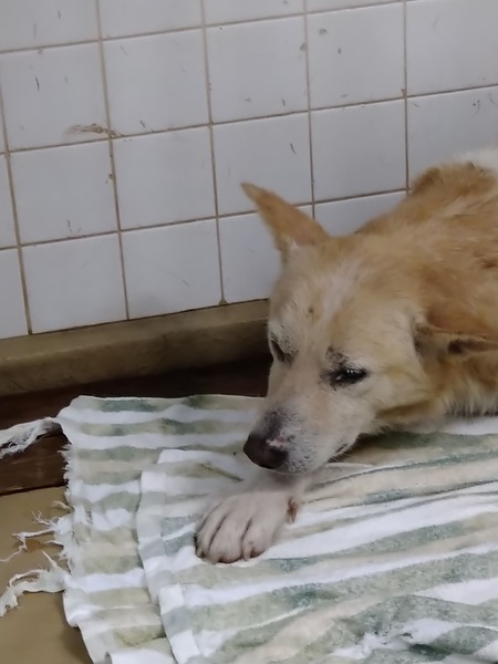 | 特徴(性格など) | 毛色は薄茶色 皮膚の状態がよくなく毛並みも悪い 体重は見た感じ15〜18kg(あくまでも個人の見解) 唸りも威嚇もありません 怯えています |