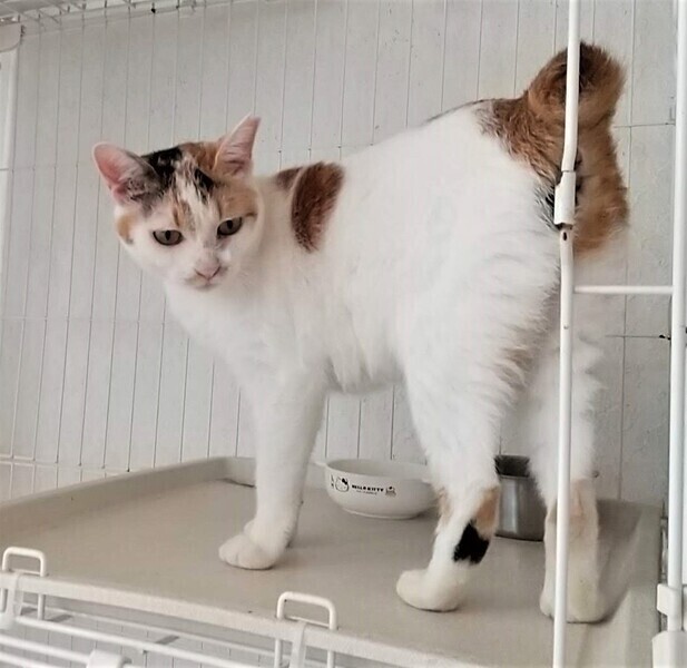| 特徴(性格など) | 【猫の仮名】 ワカメ 【毛色・柄】 三毛、ボブテイル(担当者 秋元) 尻尾は超短いウサギしっぽで、身体は小さめです。 とても人懐っこく、人の後をついて回り、スリスリしてくれます。 人間が好き過ぎて、他の猫さんとうまく付き合えない時があります。 1匹で可愛がってくださる方にお勧めです。 健康状態 良好 ●ウイルス検査(エイズ・白血病検査) 陰性 ●ワクチン 2回 ●蚤取り 1回 ●駆虫 2回 ●検便 2回 |