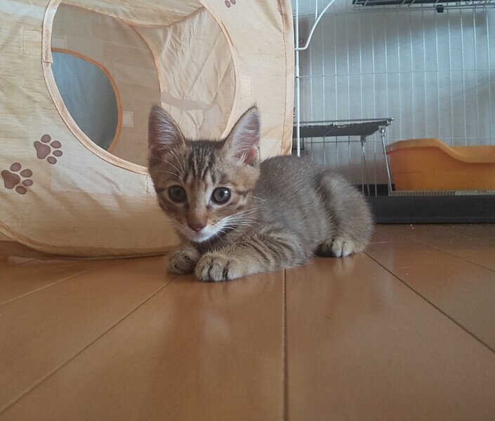 | 特徴(性格など) | 【色柄】 キジトラと茶トラの間くらいの色です。背中の縞は薄く、アビシニアンみたいな色をしています。 【性格】 保護した当初は怖がりでしたが、すぐに慣れて、今では抱っこが好きで自分から膝の上に乗ってきます。 猫じゃらしで遊ぶのが好きで、ひとりでずっと遊んでたり、他の子猫と走り回ったり、元気によく遊び、よく食べ過ごしています。 【健康状態】 ・エイズ、白血病 陰性 ・検便 陰性 ・ノミダニ駆虫済み |