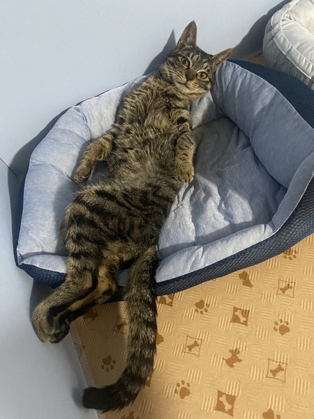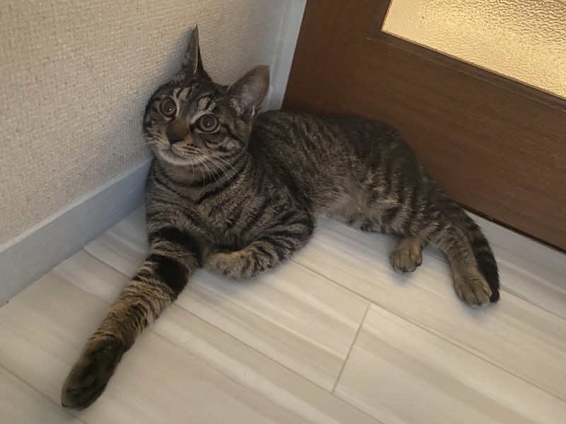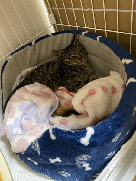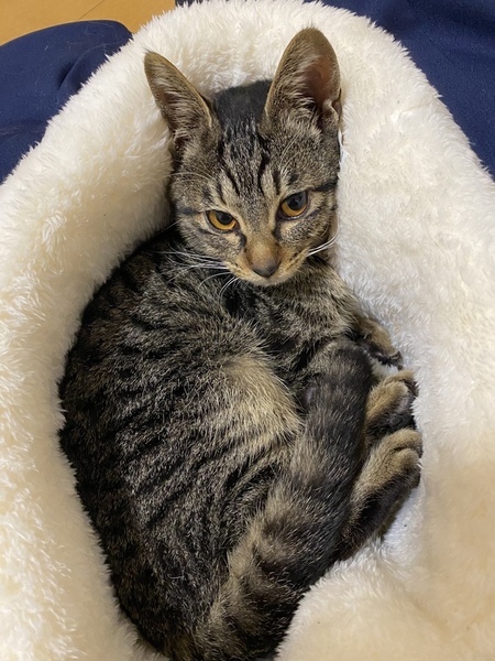 | 特徴(性格など) | キジトラのユルくんです。 とてもやんちゃな子です。 事故のせいで少しだけ歩き方が変です。 慣れると甘えん坊な子です。 膝で寝るのが大好きです。 爪も切らしてもらいます。 猫じゃらし遊びは下手くそです。 遊ぶ時に噛み癖はあります。 |