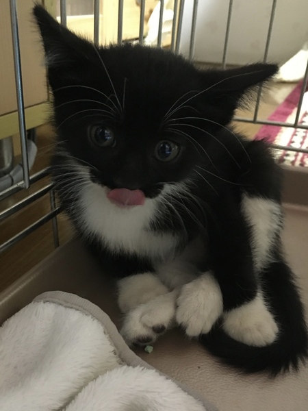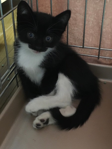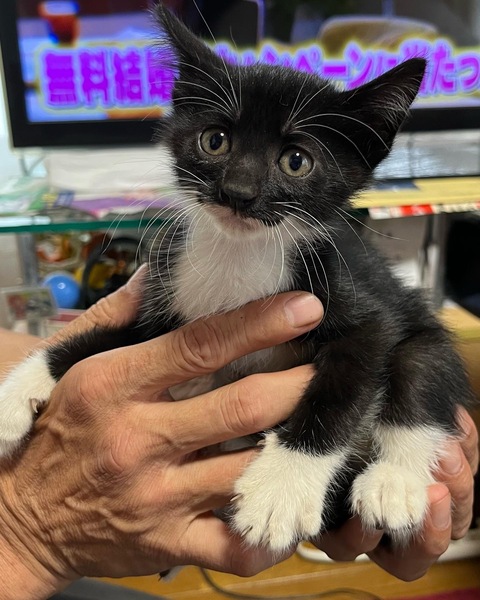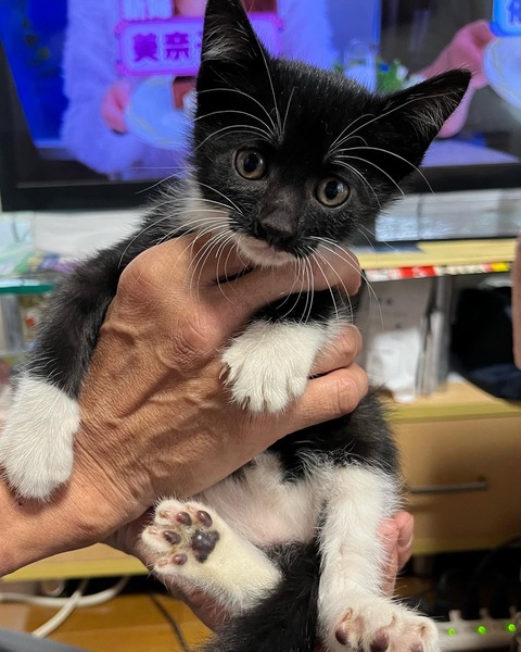 | 特徴(性格など) | 目がクリクリで黒の多い白黒ちゃんです。 尻尾真っ直ぐです。 性格は昨日の午後 保護したばかりですので分かりませんが甘えん坊さんの様な感じがします。 生まれた日付おおよそと生後2か月ぐらいだと思います。はっきりは分かりません。 |