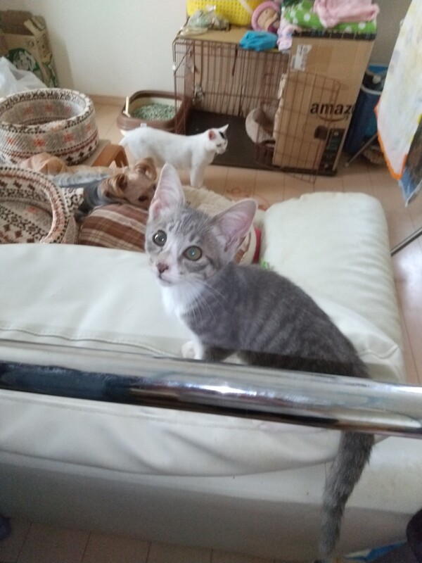 | 特徴(性格など) | サバ白の男の子、人懐こく甘えん坊で、スリスリ・ゴロゴロして来ます。 沢山遊んで元気に過ごしています。 ノミダニシャンプー済み ご飯はカリカリを食べ、トイレは完璧です。 |