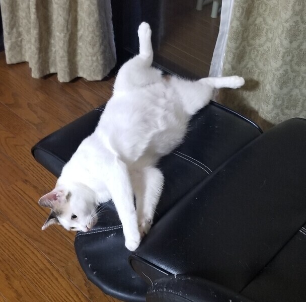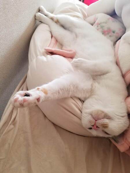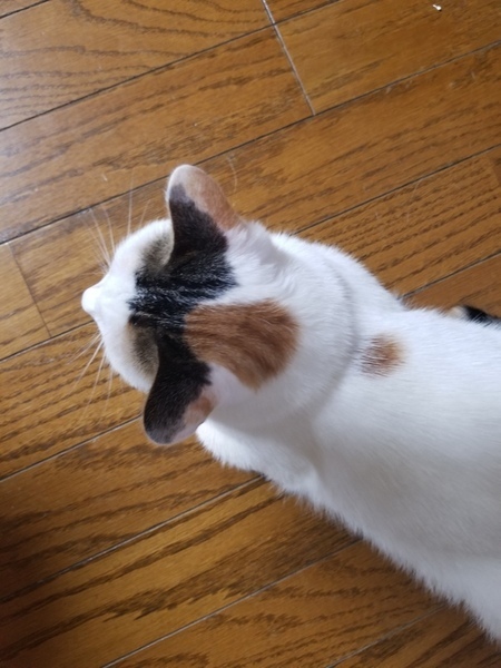 | 特徴(性格など) | ★上から見た時の頭の模様がコウモリみたいで特徴的!(写真6枚目) ★ワオキツネザルみたいな柄のしっぽ(写真1枚目) ★特徴的な声 ピーー、キュイーーンみたいな感じの甲高い声で鳴きます。 初めて聞いた時は機械音に聞こえて、いとちゃんと分かりませんでした( ̄▽ ̄;) 1回聞いて頂けると記憶に残る事間違いなしの可愛い声です♬ (動画4秒辺り) ★新しい環境に慣れるのが早い 保護して1週間も経たない内に、先住猫がいる中リビングでくつろいで寝ていました(笑) 前から我が家にいらっしゃいましたっけ?と思うくらいの堂々っぷりでした! ★人の脚の間が大好き 他に通れる場所はいくらでもあるのに、なぜか近くに来る時にわざわざ人の脚の間を通っていきます(笑) ★社交的 基本的に我が家の男性陣は保護猫ちゃんに嫌われがち(皆猫が好きで悪い事はしていませんm(__)m)なんですが、初対面にもかかわらずスリスリ甘えにいったので、とても驚きました!! いとちゃんが若いのももちろんありますが、社交的な性格だな~と思います。 ★とてつもなく甘えん坊!! 今まで多くの子を保護してきましたが、その中でもダントツで甘えん坊な子です!! どこへ移動するにも必ず後をついてきて、寝る時も横にピッタリひっついてくる可愛い子です。 トイレやお風呂に行った後も、扉の前で待ってくれていて、最近は、仕事から帰ってくると玄関まで迎えにきてくれます! とっても構ってちゃんなので、スキンシップの時間を長く取って頂ける方だとより嬉しいです(o^―^o) ★やんちゃ 初対面にも関わらず、先住猫に猫パンチをしたり、お尻をフリフリして後ろから突進したりと怖いもの知らずのやんちゃな子です(;'∀') 先輩からのご指導があったのか、最近はほとんどそういった事もなくなりました(笑) 根は悪い子ではないので、先住猫ちゃんとも比較的早く打ち解けられるタイプの子だと思います(o^-')b ! |