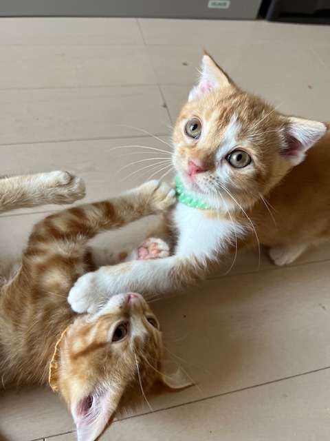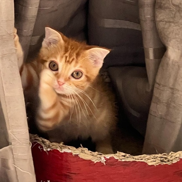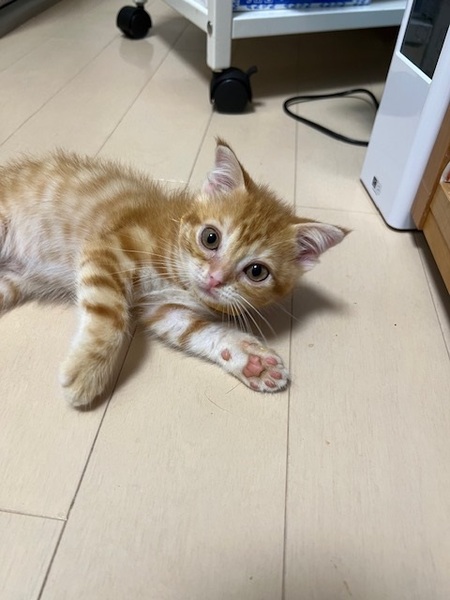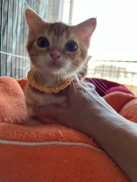 | 特徴(性格など) | ☆☆☆ご希望の方は、以下のアンケートフォームにご記入の上、送信してください☆☆☆ ねこ親希望アンケート→ http://chibawan.net/contactform_cat 【猫No】3535 【愛称】ジューシー 【性別】オス 【年齢】3ヶ月(22/05/07頃生) 【毛色】茶トラ・折れ耳・真っすぐの長しっぽ 【体重】1310g(22/08/05現在) 【状態】ノミダニ駆除済、駆虫済、猫風邪治療済、ワクチン1回接種済(22/7/19)、血液検査済(エイズ-・白血病-)、トイレ躾済 【預かり場所】東京都八王子市 【日記】Instagram @nicomama9 (https://www.instagram.com/nicomama9/?hl=ja) 【経緯】千葉県動物愛護センターから引き出しました 【性格】折れ耳で横長のお顔でスコティッシュフォールド、アメリカンショートヘアのようにも見える外見です。 人のことが大好きで、フリーにすると、まずは脚の上にのってゴロゴロと喉を鳴らします。点眼等もおとなしくできます。 好奇心旺盛で、高いところに登ったり、狭いところを探検したり毎日楽しそうに遊んでいます。 初めての他の猫や犬にも上手くご挨拶できました。 警戒心がなく、人が近づいても、雷が鳴っても、動じることなく眠っています。 恐らく生まれたときから一緒のかずみと毎日楽しく遊んでいますので、かずみと一緒に迎えてくださるご家庭を希望します。 【その他】お届けは去勢手術・マイクロチップ装着・2回目のワクチン接種などの医療が終わってからとなります(手術日は未定ですが、22/8末~9初を考えております)。 完全室内飼育で終生愛情をもって飼養してくださり、かずみに合った生活スタイルで暮らしてくださる方、脱走対策に細心の注意を払い、労を惜しまず入念に脱走対策を講じてくださる方、定期的なワクチン接種、必要な医療処置等の健康管理をお約束していただける東京近郊の方からのお問い合わせをお待ちしています。 大変申し訳ありませんが、子猫のため、55歳以上の方からのお申し込みはお断りすることがございますので、ご了承ください。 |