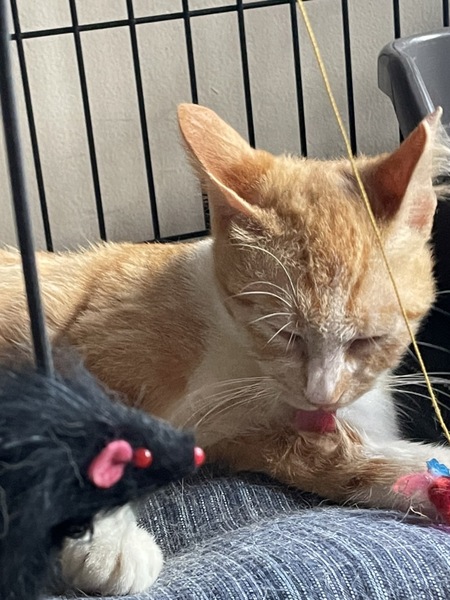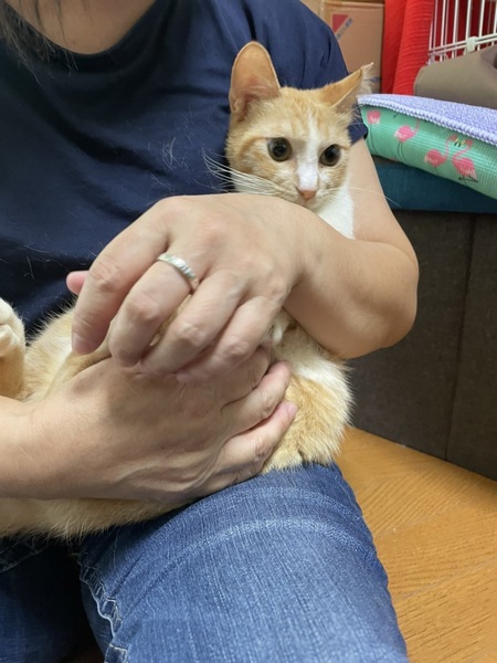 | 特徴(性格など) | <初期医療> 健康状態:良好 ウイルス検査:陰性 ワクチン接種:済み(1回目7月12日)(2回目7月30日) ノミダニ駆除薬:済み 糞便検査:済み 人馴れ抜群の可愛い茶白仔猫です。おてんば姫様でよく遊んでいます。 フードもよく食べ、トイレもバッチリです。 一緒に保護したライとも仲良しで、人も猫も大好きな性格花丸女子です。 しっぽは長く、薄い茶色がとても綺麗な茶白猫です。 初心者のご家族様でも先住猫ちゃんのいるお家、お留守番のあるお家でも大丈夫です。 フードは、カリカリをメインに食べていますが、ウエットもチュールも食べます。 |