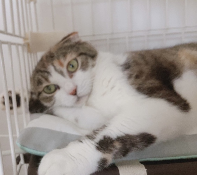 | 特徴(性格など) | スコティッシュのmixで三毛猫です。 おとなしい性格で、人に慣れています。 少し臆病なところはありますが、抱っこも出来ます。 |