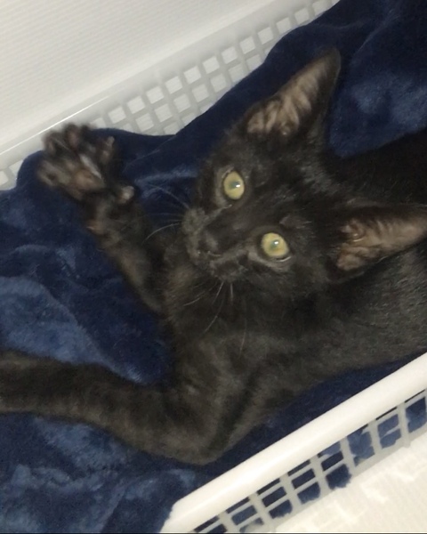 | 特徴(性格など) | 生後1週から人間に育てられたため、とても人馴れしています。 人格形成される時期なので好奇心旺盛ではありますが、おとなしくマイペースな性格です。 見た目が瓜二つの兄弟がいますが、この子の特徴としては4本足に長毛の白い毛が混じっています。食いしん坊でだっこの大好きな甘えん坊です。 |