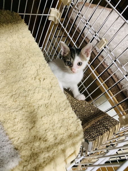 | 里親募集する理由 | TNR中に、用水路の中で見つけました。最初は大丈夫かなと思っていましたが今は元気に育っています。家でも保護猫が多くの見てあげれません。ずっとのお家を見つけたいです。 飼い主がいないことも各所にて確認済みです。 |
