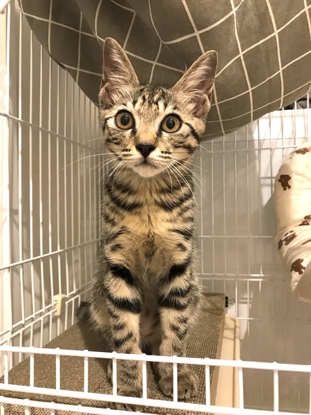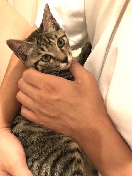 | 里親募集する理由 | 野良猫をお世話している地域で突然仔猫が現れました。 車通りも多く、事故が多い場所なため保護しました。 近寄ると逃げてしまう子だったのですが、保護後はすぐに落ち着いてご飯もよく食べています。 先住猫がいるため子猫はケージにいれているのですが、他の猫を保護したのは初めてだったため 先住猫がご飯も食べれずトイレにも行けず、初めてトイレ以外の場所で粗相してしまい、 かなりストレスになっているようですので、1日も早く子猫を家族として迎えてくださる方を探したいと思っています。 |