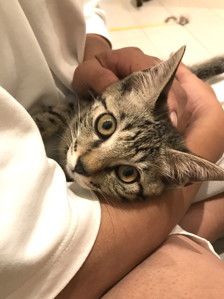 | 特徴(性格など) | ●猫の種類(色、柄、特徴) キジ 肩ぐらいまでは茶キジですが、体はグレーキジ(サバトラ)の色が強いです。 ●猫の性別 オス ●猫の年齢 3ヶ月くらい ●保護した日 2022.8.2 ●現在の健康状態 良好 病院でヘルスチェック済 ウイルス・白血病・エイズ 陰性 ノミダニ駆除、検便・駆虫済 ワクチン1回目済 ●保護している場所 福岡市博多区 ●性格・特徴 まだ保護したばかりなので基本的に三段ケージ で過ごしていますが、暴れることもまったくありません。 噛み癖も今のところないです。 大人しい性格です。たまに甘えたい時やトイレの時に鳴きます。 トイレは教えることなく初めからできています。 少し前まで外にいて、人を見たらすぐに逃げていた猫と思えないほど初日からすぐに慣れてくれました。 抱っこもお膝も大好きでゴロゴロとくつろいでくれます。甘えん坊さんです。 ご飯はカリカリとウェットを一緒にあげています。特に好き嫌いはないようです。 トイレは木が原料のトイレに流せるものを使っています。 |