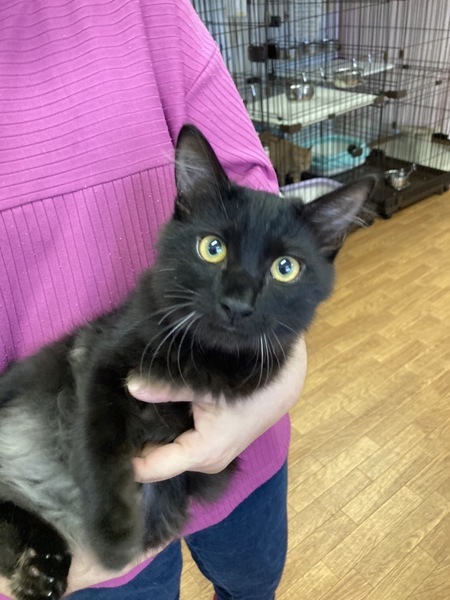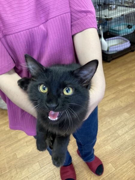 | 特徴(性格など) | 2022.4.14生まれ(推定) 毛色:黒 半長毛の可愛い女の子。 フワフワ耳毛&短いシッポは幸運のカギ尻尾♪ シッポをフリフリしながら遊びます。 ご飯大好き、遊ぶの大好き、人も大好きです♡ 可愛い顔してご飯の食べ方は激しいです! 抱っこしてると、そのまま寝てしまうことも☆ |