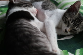 | 特徴(性格など) | ◆性格や特徴 ハチワレのお兄ちゃん 目がくりくりしててピンクの肉球と鍵しっぽが特徴の可愛い男の子です。 とっても甘えん坊ですぐに懐いてくれました。 キジシロの妹ちゃん 小柄ですこし大人しい子ですが遊ぶのが大好き、いつもお兄ちゃんや私の後ろを歩いてます。 少し慣れるとお兄ちゃんと同様になついてくれました。 |