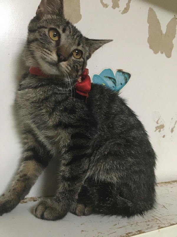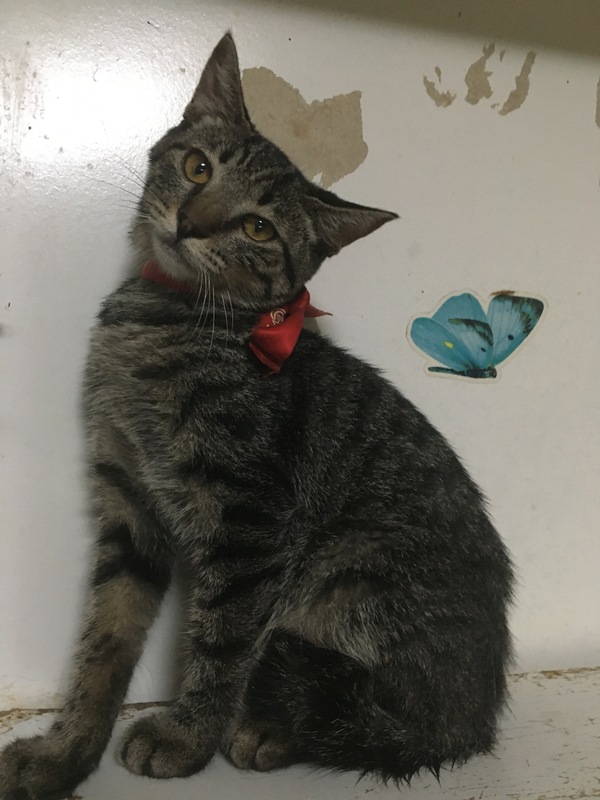 | 特徴(性格など) | 少し濃いキジ柄、尾尻中長先曲がりです。 保護時は、環境に馴れるまで、しばらくニャーニャーでしたが今は落ち着いてます。ビビりですが抱っこできますし、撫で撫でも出来ます。他の子共仲良しできます。 ご飯は、女の子らしく少食ですが、しっかりと健康的です。 |
