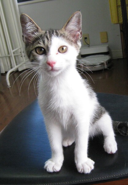 | 特徴(性格など) | 白黒ぶち柄。活発で人懐こく、抱っこ大好きでゴロゴロいいます。獣医さんから健康状態はよく、性格がいいねと言われました。駆虫済み(ブロードバンド)、ワクチンは近々接種予定です 。トイレもちゃんとできます。 |