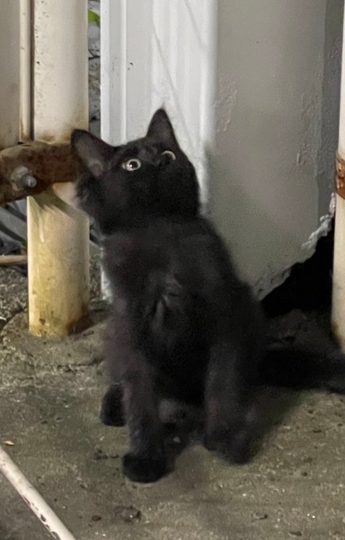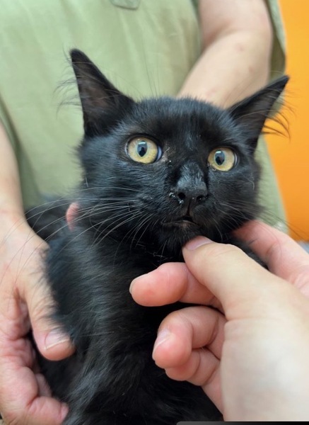 | 特徴(性格など) | 色柄は全身黒色で長毛です。 人馴れしてナデナデ抱っこ大好きです。 子猫にしては兄弟猫の中でも一番大きいです。 ご飯も良く食べます。 |