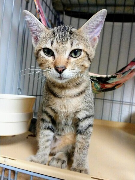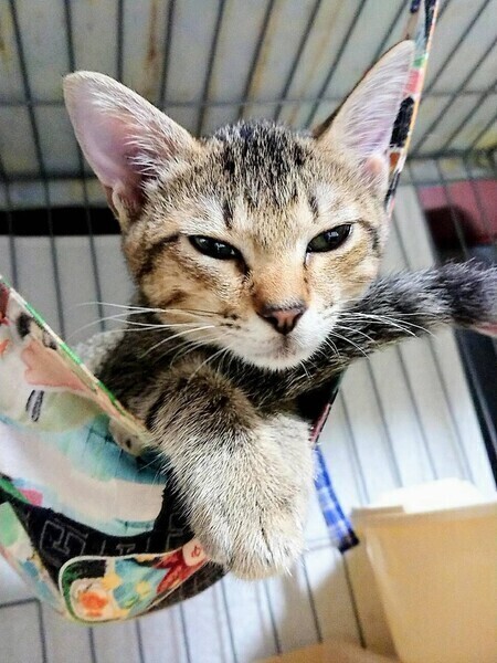 | 特徴(性格など) | ◆わさんぽんちゃん 天真爛漫な三本脚の女の子 ●月齢の小さな子猫は、以下の条件についてご了承の上で応募をご検討下さい。 ◆お留守番の少ないご家族を希望します。 ◆2匹でお迎えくださるご家族を優先いたします。 ◆小さなお子様のいるご家庭は状況によりお断りする場合がございます。 ◆高齢者のみのご家族からの子猫のお申し込みはお受けしていません。 ○沖縄県内にて保護されました。 ○生後5か月ぐらい(2022年10月上旬時点)のキジトラの女の子です。 ○しっぽは細くてまっすぐです。 ○後右脚を断脚していますが、生活には支障なく過ごしています。 ○元気いっぱい動き回っておもちゃで遊ぶのが大好きです。 ○とても懐っこく抱っこも出来ます。 ○物怖じしないタイプです。 ○元気にすくすく育っています。 ◯YouTubeにも動画を上げています。こちらもご覧下さい。 「わさんぽん」 https://youtu.be/fJhl-eNYiiI ★ワクチン2回接種済み、不妊手術済み。 ★猫エイズ、猫白血病ともに陰性。 ★後右脚を断脚していますが、生活には支障なく過ごしています。 ☆★☆★☆★☆★ 〇7/31(日)Youtubeで開催の「こねこのバーチャル譲渡会2022 第2弾」に出場しました。 「HGA48犬猫ニュースチャンネル」 https://www.youtube.com/watch?v=5FUXyQtrCtg 可愛い姿をぜひご覧ください。 ★★Zoomアプリを使用して、リモートお見合いを設定することも可能です。まずはお申込みください★★ |