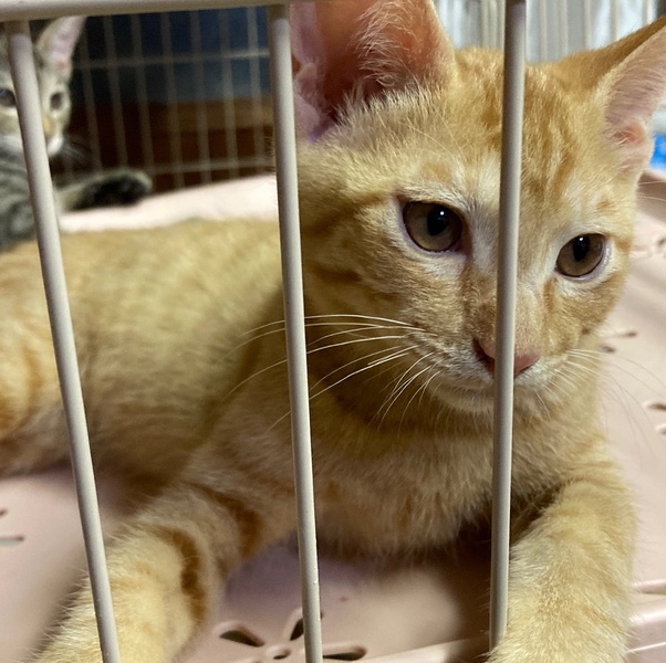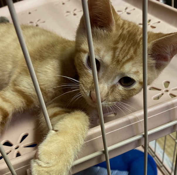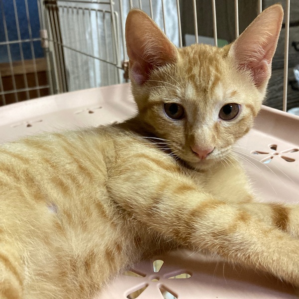 | 特徴(性格など) | 今年の5月に生まれた6兄弟のうちの1匹、茶トラの男の子です(他の兄弟は里親さんに巡り会うことができました)。 ケージ飼育でトイレはマスターしてます。人慣れしており好奇心旺盛で遊び好きな子です。よろしくお願いいたします。 |