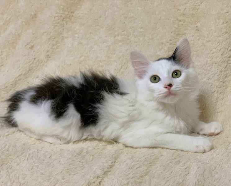 | 特徴(性格など) | 【仮名】リーブイヒくん 【性格】モフモフふわふわのリーブイヒくん♪ ※仮名はドイツ語でカワイイです♪ リ〇ブをしたのか?ってくらいの モフモフ増毛っぷりです(笑) 仮名とは関係ないよ(笑) イケメンっぷりもハンパなく 将来有望株ですよ♪ まだまだ人馴れ修行中ですが 撫でるとゴロゴロいうし シャーもないのでもう一息です! あとは皆さんにお任せします(爆) ※超他力本願でスイマセン♪ 兄妹のキュートちゃんか同世代にゃんこと ペアでのお迎えを希望します♪ ※このコはイチピキにすると おそらく馴れないと思います♪ ※1ピキ譲渡不可 |