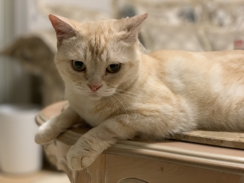 | 特徴(性格など) | 純血アメリカンショートヘア、カメオタビー柄、丸くて可愛いお顔立ち、小柄の綺麗なティーちゃんです。 すりすりゴロゴロ人間大好き、いつもベタベタの甘えん坊ちゃん♡ あまり多頭飼いには向かない様子で、群れない子です。人間を独り占めしたいようです笑 ふみふみマッサージが得意で、背中や足を精一杯揉んでくれます(*´˘`*) |