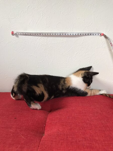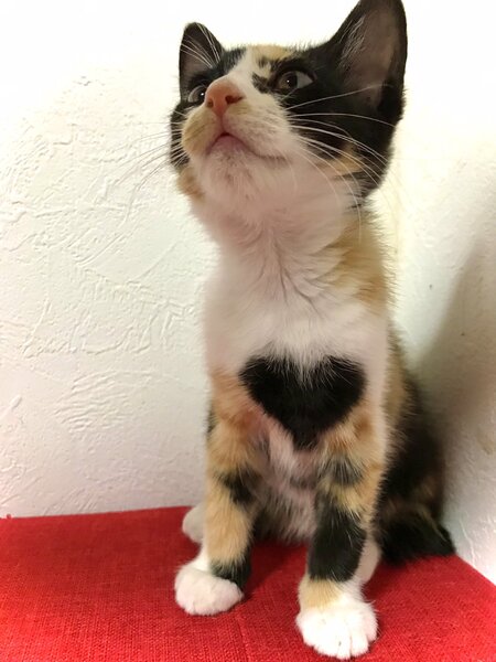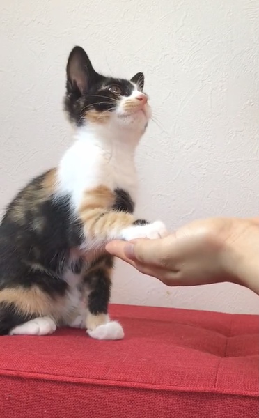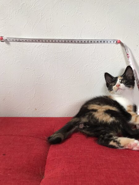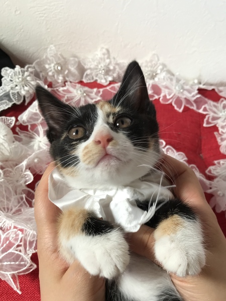 | 特徴(性格など) | ミケ猫です【性格】物怖じしない好奇心旺盛なやんちゃ娘です。環境変化への適応が早く、先住猫にも積極的かつ友好的です。【しつけ】トイレも覚えました。爪切りとお風呂は練習中で、まだ嫌がりますが、攻撃や威嚇をされたことはありません。軽い芸では『お座り』と『お手』ができます。【ご飯】とっても食いしん坊で好き嫌いもないです。が、ゆえに人間の食べ物にも興味を示すので注意が必要です。 | ||