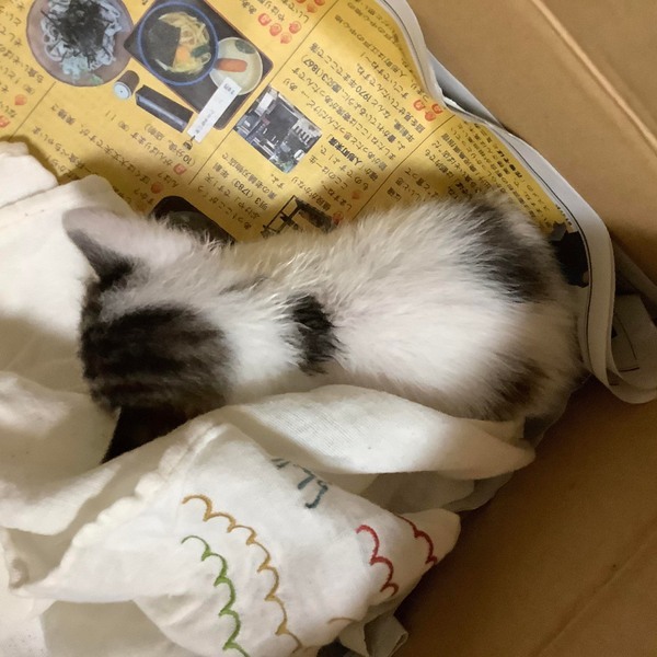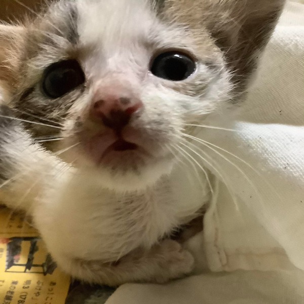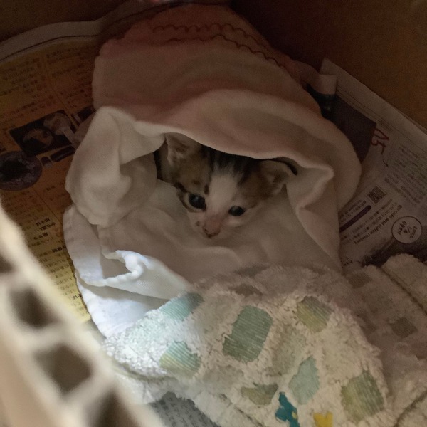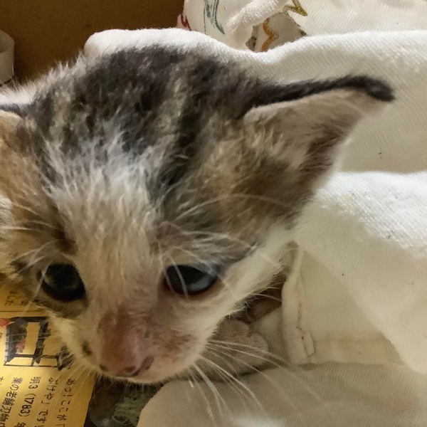 | 特徴(性格など) | ※トライアル先が決定いたしました。先住猫が居るお宅ですので、万が一相性が悪かった場合などに、改めて募集するかも知れません。順番待ちという形で大変恐縮ですが、その場合の引取り先としてご検討頂ける方はご連絡くださいませ。また、質問等もお気軽にどうぞ。 生後3週間程度でしょうか。目は開いており、小さい歯も生えていますが、片手に乗るサイズの子猫です。 京都市内の自宅近くにて保護しました。 白に黒・茶の模様が入っています。 明日、動物病院にて検査を受ける予定です。 性別や生後どれくらかなど、詳細分かり次第追記いたします。 |