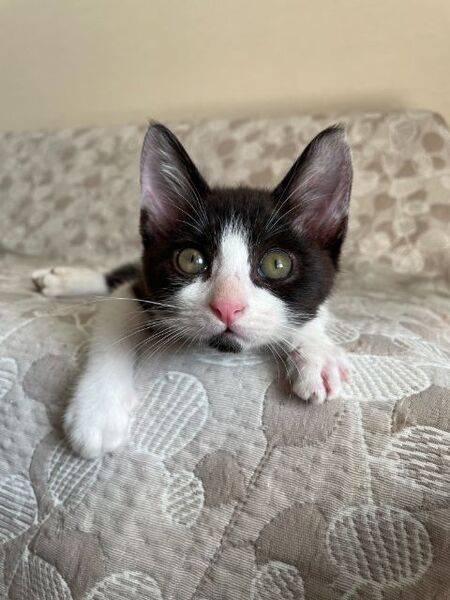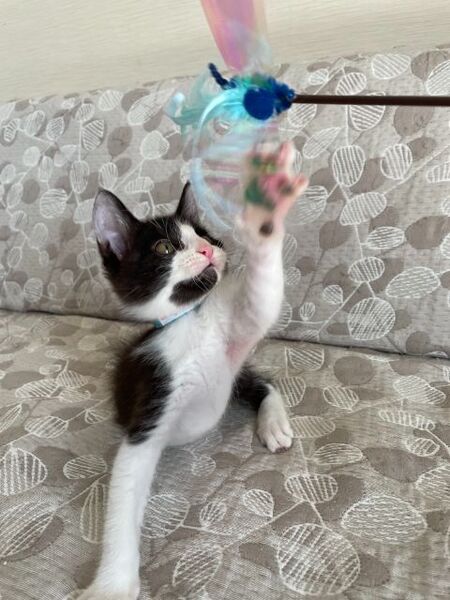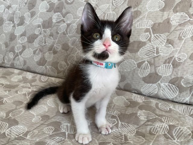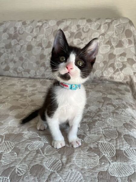| 特徴(性格など) | ☆☆☆ご希望の方は、以下のアンケートフォームにご記入の上、送信してください☆☆☆ ねこ親希望アンケート→ http://chibawan.net/contactform_cat 【猫No】 3543 【愛称】 ぐら 【性別】 オス 【年齢】 推定2.5ヶ月齢(2022/8現在)(2022/5中旬頃生) 【毛色】 黒白 【体重】 1.0kg (2022/8現在) 【状態】 ワクチン接種2回目済(2022/8/6)、血液検査(エイズ(-)・白血病(-))、駆虫済(ノミダニ)、トイレ習得済、去勢手術・マイクロチップ装着(2022/8/13予定)、断指手術済 【保護場所】千葉市 【日記】 http://sakuranouchi.blog.fc2.com/ さくらのおうち https://www.instagram.com/sakuranouchi/ Instagram 【経緯】 千葉県動物愛護センターより引き出し 【性格】 人のことが大好きで、ゴロゴロが止まらない甘えん坊です。人に構ってもらいたくて、人によじ登ってきたり、人の後追いをしたり、人に構ってもらえればいつでもご機嫌さんです。好奇心旺盛なやんちゃ坊主ですが、来客の気配がするとダッシュで物陰に隠れたり、小心者の一面もあります。めだったイタズラをすることはありませんが、やんちゃ盛りの仔猫ですから、思わぬところによじ登ったり、物を転がしたり齧ったり等しますので、誤飲・誤食等の事故が起こらないように安全に配慮した環境作り(コンセント等の安全対策を行う、小物や紐状の物は片付ける等)をお願いします。他の犬猫ともすぐに馴染んで一緒に暮らすことができますが、やんちゃ盛りの月齢で毎日兄弟でニャンプロに励んでいるので、兄(ぐり君)と一緒にお迎えいただくか、一緒に遊べる年齢の近い先住猫さんがいるご家庭が向いているように思います。ぐら君の日常の様子はInstagramでご紹介しておりますので、ぜひ一度覗いてみて下さい。 【その他】猫に合った生活スタイル、終生飼養、完全室内飼育、脱走防止対策、定期的なワクチン接種などの健康管理、定期的な近況報告をお約束いただけるご家族で、アンケートに快くお答え頂ける方からのお問い合わせをお待ちしております。お届けの範囲は、猫の負担を考慮して千葉市から車で90分程度の範囲を希望します。 【特記事項】左前脚を負傷した状態で保護され、断指(親指と人差し指)処置を受けました。治療は完了しており、日常生活には何の支障もありません。 |