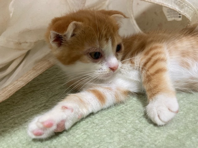 | 特徴(性格など) | ☆☆☆ご希望の方は、以下のアンケートフォームにご記入の上、送信してください☆☆☆ ねこ親希望アンケート→ http://chibawan.net/contactform_cat 【猫No】3545 【愛称】めぐ 【性別】メス 【年齢】約3ヶ月(22/06/01頃生)(22/08/29現在) 【毛色】茶白(耳折れ) 【体重】1㎏ 【状態】ワクチン接種済(22/08/01)、血液検査済(エイズ−・白血病−)、駆虫済、ノミダニ駆除済、トイレ躾済、不妊手術・マイクロチップは9月予定 【預かり場所】横浜市 【日記】https://www.instagram.com/himeborder0426/ Instagram @himeborder0426 【経緯】千葉県動物愛護センターより引き出し 【性格】甘えん坊な女の子。猫も人も全然平気。 【補足事項】まだまだ小さいめぐ、茶トラの栞(しおり)とは姉妹だと思われます。仲良し姉妹一緒にご希望頂けるご家族を希望します。 【その他】愛情いっぱいの終生飼養、猫に合った生活スタイル、完全室内飼育、定期的なワクチン接種等健康管理をお約束頂ける神奈川県近郊のご家庭でアンケートに快くお答えいただける方からのお問い合わせをお待ちしています。 大変申し訳ありませんが単身の方、同棲カップルの方、高齢者(60歳以上)の方のお申し込みにつきましてはお断りさせて頂く場合がありますのでご了承の程よろしくお願いします。 |