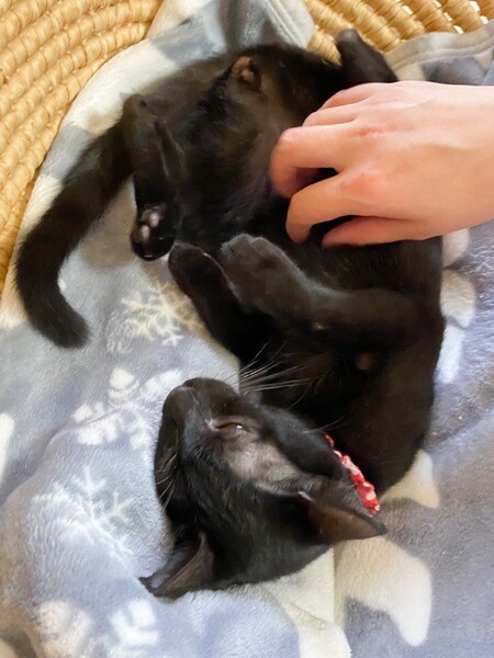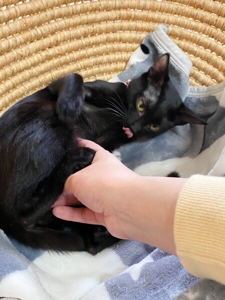 | 特徴(性格など) | チョーーーー人が大好き♪甘えっコ「チーズー」ちゃん❤ 声をかけただけで、構って♪遊んで♪の構ってちゃん! 現在、他の猫ちゃんとの集団生活トレーニング中♪ だけど、他の猫ちゃんはちょっぴり苦手?!慌てて人の傍に駆け寄って助けを求めてます。 現在、ドライフードを24時間の置き餌として栄養補給、水分補給のため一日3回パウチを与えています。 <推定誕生日:2022年6月始め> |
