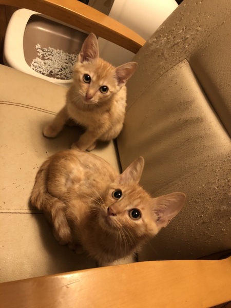 | 特徴(性格など) | 茶トラ猫二匹です 甘えますが、音に敏感です。二匹でいっつもくっついてねてます。トイレおぼえれません。 |