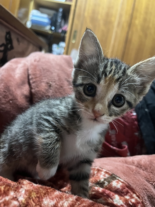 | 特徴(性格など) | キジ猫の柄に少し茶色が混じってます。 人見知りしますが子猫なのですぐ慣れるかと思います。 やんちゃで食いしん坊です。 |