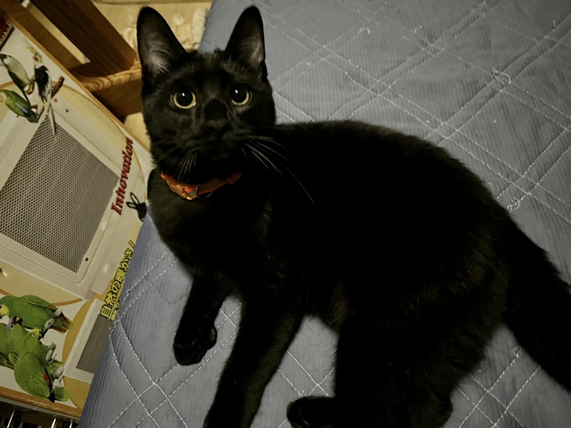 | 特徴(性格など) | 黒猫です。 人見知りしますが慣れれば可愛く鳴いて甘えてきます。 食いしん坊さんです。 |