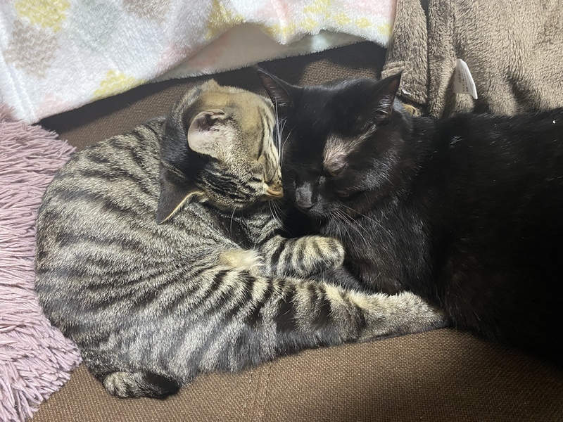 | 特徴(性格など) | ☆黒猫☆2歳☆去勢手術済み かなり甘えん坊でよくくっついて歩きます どこにでもついてきます まだまだ甘えん坊で寒い日は私の腕の中で丸くなります。 乗り物苦手です ☆キジトラ☆1歳☆去勢手術済み 丸い尻尾が特徴で慣れるとかなり甘えん坊です 夜はグルグル鳴きながら隣で寝ます 腕枕が大好きです 好奇心旺盛ですが、とても良い子です 2匹はとても仲良しです 追いかけっこしたりイタズラしたり よく同じ部屋にいます♪♪ |