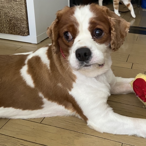 | 特徴(性格など) | 名前:パーシー 推定年齢:3歳 種類:キャバリア・キング・チャールズ・スパニエル 体重:12キロ 性格: 明るく好奇心旺盛、人間も犬も大好きな遊び好きです。 赤ちゃんのような性格で人懐こく、甘えん坊で寂しがり屋。 賢く物覚えが早いですが興奮もしやすいのでメリハリがあるしつけが必要です。 トイレトレーニング成功率は今のところ6割OKです。 少しマーキング癖が出てきましたが、去勢手術をしたので治っていくかもしれません。 長い目でしっかりと優しく教えていってあげて頂ければと思います。 寂しがり屋なのでお留守番が少なめのお家が理想的ですが、お留守番はゲージ内で今の所上手にできています。 ゲージ外でのお留守番は悪戯防止などの対策が必要だと思います。 小学4年生以上のお子さんがいる家庭や犬との遊び好きの先住犬がいる家庭など、元気いっぱいに犬と遊び過ごしたい人向きです。 パーシーは猫も好きですが、猫からは嫌われるタイプなので向かないかと思います。 おもちゃでの遊びが大好きで、一人遊びも人や犬と遊ぶのも上手です。 ただしお散歩に関してはレスキューされるまで外の世界を今まで知らなかったためまだ練習中です。 毎日お外に連れ出し、根気よく慣れさせていただける方希望です。 少しずつ歩けるようになっているので、毎日続ければ必ずお散歩が好きになると思います。 キャバリアは健康のためにも朝夜毎30分程度の散歩が理想的な犬種です。 とにかく愛嬌満点、性格が最高に良くひょうきん者のパーシーです。 |