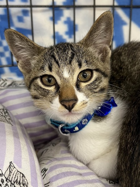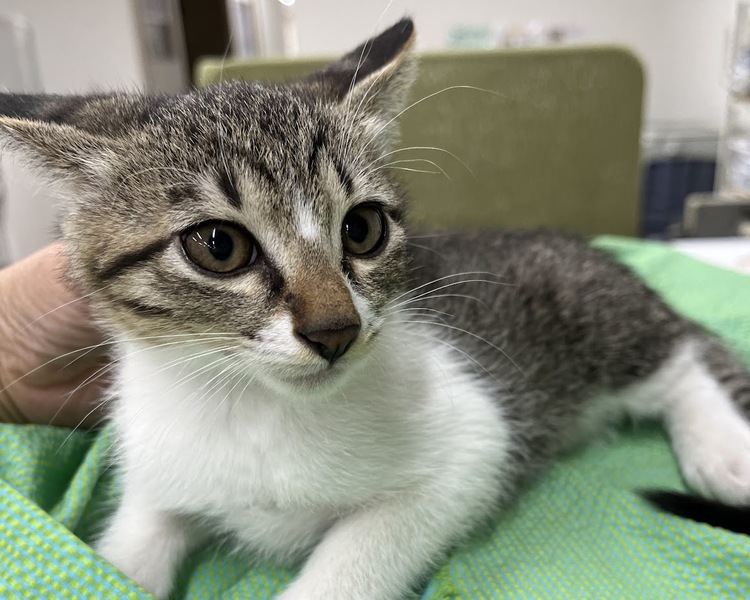 | 特徴(性格など) | キジ白の男の子。 4月末産まれ3ヶ月ぐらいです。 人懐っこく元気です。 週末の譲渡会に参加予定です。 個別のお見合いにも対応します。 |