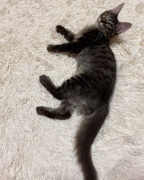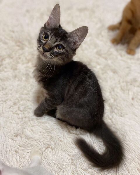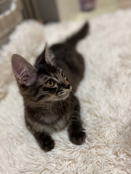 | 特徴(性格など) | 4月28日生まれ 柔らかく長めのふわふわ毛・しましまの男の子 いろんな事に好奇心旺盛で、何かを探してはオモチャにして遊んでいます。 大らかで物怖じしない性格です。 |