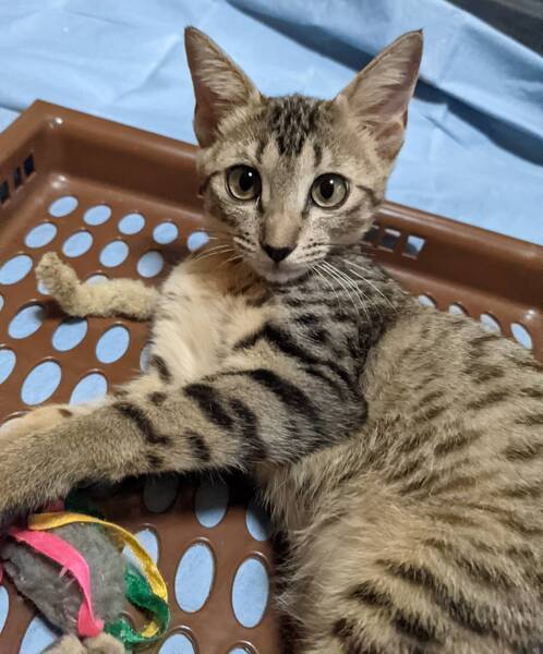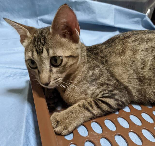 | 特徴(性格など) | とても綺麗なキジ猫ちゃんです。 目とお耳が大きく鼻筋のスッとした美猫ちゃんです。 性格は、甘えん坊で遊ぶのも大好きで、性格も穏やかでかいやすいのではないかと思います。 |