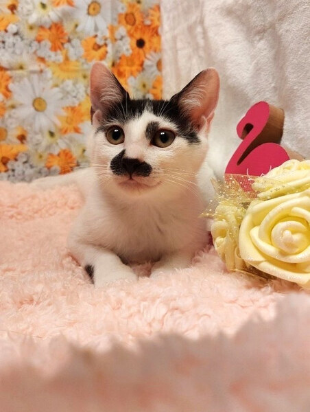 | 里親募集する理由 | 猫風邪をひいていて皮膚の状態が悪かったため保護しました。 | ||
