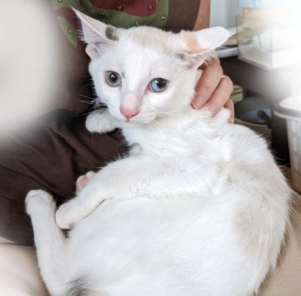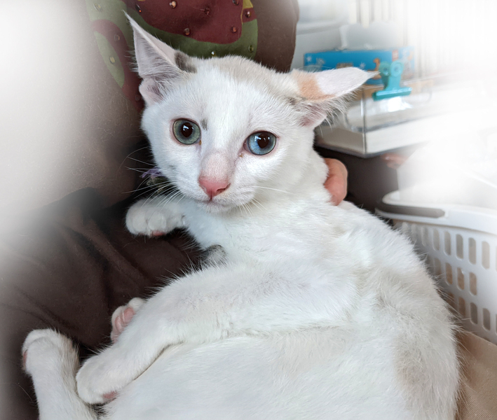| 特徴(性格など) | 9月18日(日)12:00~16:00(最終申込15:30) ねこざんまい譲渡会【東日本橋会場】に参加予定です! 会場の案内はこちら♪ https://ameblo.jp/neko3mai/entry-12731669199.html ※猫ちゃんとのお見合いは譲渡会となります。 譲渡会ご来場につきまして、事前予約は不要です。 どうぞご家族みなさまでご来場下さい♪ ★★★ご来場前に必ずご確認下さい★★★ 《里親様へお願いはこちら》 http://www.neko3mai.com/condition/condition.html 《家族募集中猫ちゃん一覧はこちら》 http://www.neko3mai.com/entrycats/entrycats.html ◆ 名 前 ◆ イッチャン ◆ 年 齢 ◆ 4ヶ月半くらい ◆ 性 別 ◆ 女の子 猫一倍、臆病なイッチャン。 預かりさんには慣れていますが、知らない人にはイカ耳で固まってしまいます。 初めは光の加減かと思ったのですが、よく見ると、左右の目の色が違います。 右目は淡いグリーンがかった水色 左目は水色 とっても神秘的です。 仮名の由来は鉛筆などに使われるイチイという針葉樹。 美味しい赤い実をつけるそうです。 イッチャンも新しいご家族の元で美しく熟してくれると思います。 カリカリのおやつを指でつまんで口元に持っていくと、うまく食べられずポロリと落としてしまうのですが、床に転がったカリカリを食べる姿にほっこりします。 兄妹仲良く、元気一杯よく遊びます。 みんな性格が良いです。 二匹でお迎えいただくと嬉しいです。 兄妹 イッチャン(淡い三毛) ウトくん(黒白) ケイくん(黒白) ピカくん(茶) 毎日たくさん遊んでくださる環境を求めています。 新しい環境では、安心安全のお部屋としてケージをご用意ください。 ジャンプといった上下運動ができる環境づくりをお願いいたします。 <保護主からのお願い> 譲渡会をお見合いの場と考えております。 ご家族お揃いで会いにいらしてください。 この子にご縁を感じ、大切にする、幸せにしたい、 と心から思ってくださる方のご来場をお待ちしております。 <希望条件> ペットではなく共に暮らす家族の一員としてお迎えいただくこと。 脱走や危険防止対策を施した、整理整頓された清潔な環境であること。 毎日たくさん遊び、猫とのコミュニケーションを大事にしてくださること。 人が過ごすお部屋に出入りの制限がないこと。 <補足> 間取り図や玄関やベランダなどの出入りがわかる写真または動画をお持ちいただくと、安全対策のアドバイスがしやすいです。 先住犬やシニア猫がいらっしゃらるご家庭はお譲りできない可能性がございます。 フード、キャリーなど、一部の準備品を指定させていただいております。 |