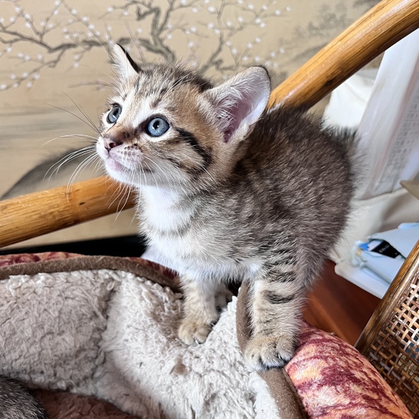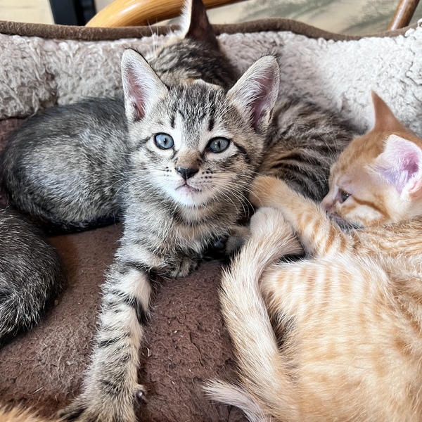 | 特徴(性格など) | ワイルドな見た目のキリッとしたお顔立ちです。6匹中キジトラ4匹と茶トラ2匹が生まれました。こちらで募集するのは、キジトラくんたちです。 グレー味の強いキジトラ2匹と茶色味の強いキジトラ1匹がいます。お顔がどの子も似てるので、実際に見てから決めてもらう形でも大丈夫です。 |