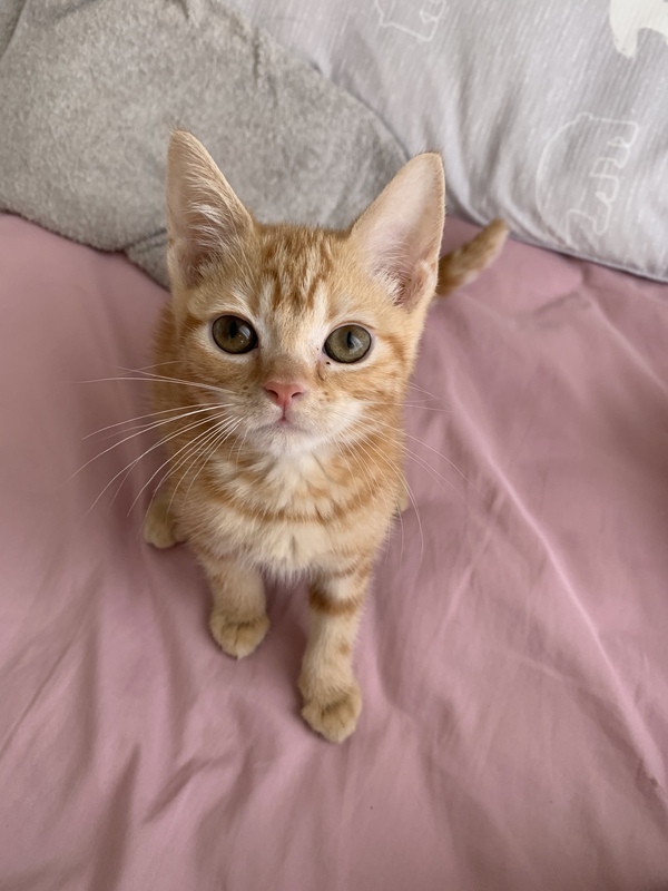 | 特徴(性格など) | アメリカンショートヘアのレッドタビーの女の子です! すごく活発で食欲旺盛で、好奇心旺盛な元気な子です♪ とっても人懐っこいので初めて飼われる方でも抱っこさせてくれると思います。 お部屋の探検が大好きです♪ 運動がとても大好きな子なので、キャットタワー等上下運動が出来るものやおもちゃを与えてあげてください。 トイレの躾は1度でできました! コード噛みや衣類等での爪研ぎ、夜泣きがありますのでご理解いただける方にお願い致します。 健康状態はとても良好で遺伝子病は検査結果よりありませんでした。 ・現在ご飯は、『ニュートロシュプレモパピー(子猫用)』を1回あたり11gで1日3回ふやかしてあげています。生後6ヶ月後(2022年11月27日)以降は、ご飯を1日2回に減らし、生後8ヶ月後(2023年5月27日)以降は、成猫用のご飯をあげてください。 ※讓渡のお渡し日までにご飯が残っていたら、そちらもお渡しさせて頂きます。 ・マダニ・ノミ駆除薬投与済です。(年に1回投与をお願い致します。) ・猫ウイルス性鼻気管炎、猫狩りしウイルス感染症、猫汎白血球減少症の予防接種をしています。 |