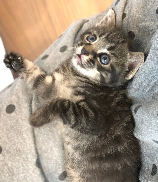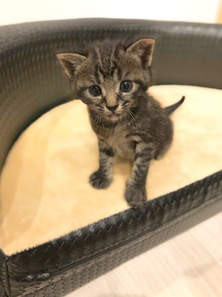 | 特徴(性格など) | 捨てられていて保護しました。120gの生まれたばかりの状態から、当方の預かりボランティアがミルクから育てました。ここまでよく育ちました。とても幸運の女の子です! ご飯もよく食べ元気にしています(^^) ・ノミダニ回虫駆除済み ・エイズ(−)白血病(−) ・3種混合ワクチン接種済 |