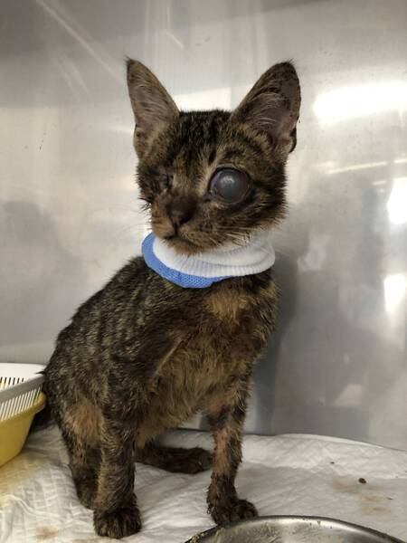 | 特徴(性格など) | キジトラの男の子です。 多頭飼育の家で生まれた子猫です。 生まれたばかりの頃に猫風邪にかかった影響で失明したと思われます。失明したことで、ごはんをきちんと食べられなかったのか生後約4ヶ月(保護時)なのに体重は900gしかありませんでした。とても小さな子猫です。 現在は、目の治療のために東京(渋谷区)の病院に入院中ですが、病院でのお見合いは歓迎と先生がおっしゃってくださっています。 多頭飼育の家で生まれたので、他の猫とも遊ぶこともできます。抱っこやブラッシングなど人と触れ合うことが好きで、とても気持ち良さそうにしている姿はとても可愛いです。 ごはんは、ドライフードやウェットフードなど1日3~4回食べています。 左目は眼圧が高いので、点眼が必要です。トイレは失敗せずに上手にできます。 エイズ、白血病ともに陰性です。 普段の様子は、Instagramで投稿しています。神栖WAKORON(かみすわころん)で検索ください。 https://instagram.com/kamisu.wakoron?igshid=YmMyMTA2M2Y= |
