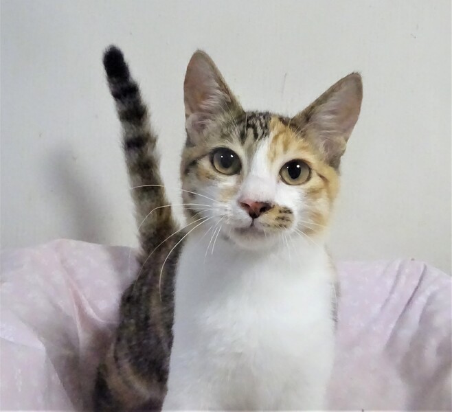 | 特徴(性格など) | 仮名: はるみちゃん、メス 毛色: 淡い三毛 性格: あまり気の強い感じはありませんが、嫌な事は主張します。 爪切りや目薬は嫌いみたいです。 威嚇なく、すんなりと抱っこ出来、抱っこすると甘えます。 食べるのは好きみたいです。 じゃらしも好きで夢中になります。 兄妹とは仲良しで、にゃんプロをしています。 大人猫とも子猫とも問題なく付き合えるようです。 兄妹のしずくくん、さやかちゃん、ひかりくんと一緒のご縁があると嬉しいです。 優しい先住猫ちゃんがいるお家でも、1頭飼いでも良いと思います。 検便済 駆虫済 ノミ取り済 ワクチン済 避妊手術済 猫エイズ・白血病ウィルス検査はともに陰性です |