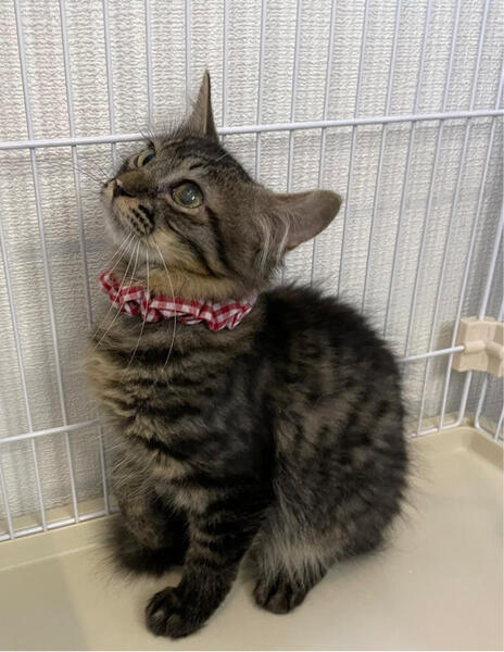| 特徴(性格など) | 川崎市大量TNR現場からレスキューした子達です。 ーーーーーーーーーーーーーーーーーーーーー 【性格】キジトラ長毛のゴージャスな女の子ちゃんのご紹介です。 その前に先ずはこの子を保護した経緯からお話致します。 神奈川県川崎市の某区にて、沢山の野良猫さん達が繁殖している地帯がありました。 そこに産まれてくる子猫達が生き残るのはあまりにも過酷過ぎる環境でした。 TNR活動の傍ら子猫達は全匹レスキューし、14匹の子猫達を川崎から連れて来ました。 保護当初のいくちゃんは酷い猫風邪から肺炎をひき起こし、生命の危険にありました。 肺炎を治す為に、毎日の投薬などの治療がしばらく続きました。 ご飯も食べられなかった時は強制給餌などをしていたので、いくちゃんにとって嫌な思いばかりさせてしまいました。 でも、いくちゃんが頑張ってくれたからこそ、今では肺炎を克服し、健康そのものになりました!かかりつけの獣医師からも大丈夫!とお墨付きをいただきました。 もう元気そのものなのでご安心ください。 百聞は一見にしかずだと思いますので、いくちゃんの様子はこちらのYouTubeをご覧ください。こちらhttps://youtu.be/tEkFdTii0OM いくちゃんはまだ人馴れはイマイチです。 ご挨拶程度にま思わずシャー!が出てしまいますが、絶対に噛み付いたり猫パンチなどの攻撃性はございません。 投薬などで嫌な思いばかりさせてしまったせいだと思いますが、まだまだ人に対して甘える事に不器用な子です。 そんないくちゃんは、普段は、ケージの中のハンモックで寛ぐ事が好きです。(ケージのドアを解放していても自らケージの中に入って寛いでいます) そんな不器用ないくちゃんの個性をご理解くださる方に迎えていただきたいと思っております。 1匹飼いでもOKです。 猫の社会化はできる子なので、先住猫さんがいるご家庭でもOKです。 2匹飼いご希望の方は、同じく譲渡会に一緒に出場するたのしくん(同じ年のキジ白♂)と迎えてくださると良いと思います。因みにたのしくんはいくちゃんより人馴れしてます。 猫飼い初心者向けではございませんが、上記の事をご理解くださり、ある程度時間をかけて向き合ってくださるのならば、慣れるまでのアドバイスは当会でお世話させていただきます。 避妊手術をしてある大きめの子猫さんなので、ある程度(半日ぐらい)のお留守番は可能です。 お仕事をお持ちのご家庭の方は、譲渡会スタッフまでお問い合わせください。 一度懐くとめちゃくちゃかわいい子なのでぜひ!よろしくお願い申し上げます。 |