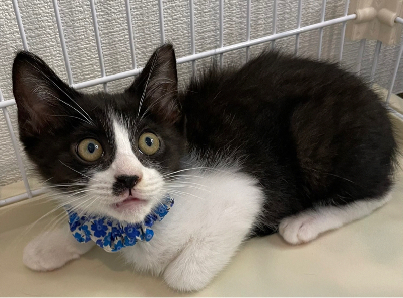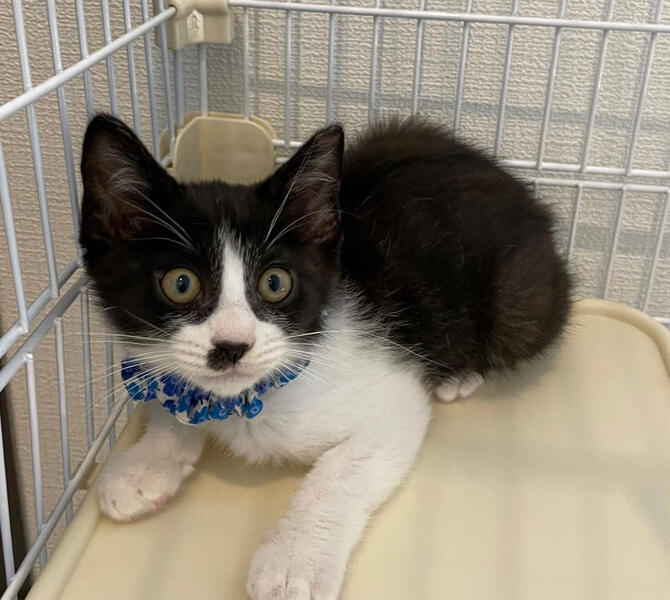 | 特徴(性格など) | 川崎市大量TNR現場からレスキューした子猫 末っ子タイプ。 ーーーーーーーーーーーーーーーーーーー 【性格】黒白ハチワレのかわいい黒白子猫ちゃんのご紹介です。 その前に先ずはこの子を保護した経緯からお話致します。 神奈川県川崎市の某区にて、沢山の野良猫さん達が繁殖している地帯がありました。 そこに産まれてくる子猫達が生き残るのはあまりにも過酷過ぎる環境でした。 TNR活動の傍ら子猫達は全匹レスキューし、14匹の子猫達を川崎から連れて来ました。 YouTubeちゅー猫チャンネルにて、初登場のことくんの動画はこちらhttps://youtu.be/TZz66b8AiPI 最近の様子はこちらhttps://youtu.be/NS1woF8OvVo そんなことくんは、三兄弟でした。 まだママ猫のおっぱい恋しい時期に捕獲にあたり、他の2匹の兄弟達よりも一足先に保護に成功致しました。(他の兄弟達は2週間後に無事保護に成功) 早めに保護出来た事もあり、ことくんは早い期間で家猫へと馴染んでくれました。 元野良猫の子猫出身ですから多少の警戒心はありますが、慣れたら直ぐにお腹を見せてくれておちゃらけてくれます。 ある意味、すごく単純であり、預かりさん曰く『お調子者!』だそうです(笑) そんな愛機のあることくんなのです。 1匹飼いでもOKですが、他の猫ちゃんが大好きなので、先住猫さんのいらっしゃるご家庭で、弟として迎えてくださる事をオススメします。 ことくんは、良き仲間になってくれると思います! 環境にさえ馴染んでしまえば、飼いやすい子なので、猫飼い初心者でもOK 1匹飼いOK 先住猫のいるご家庭でもOK お子さんのいるご家庭でもOK どんな環境にも順応してくれるとおもいますが、元野良猫出身の警戒心がある事だけは念頭に入れておいてください。 食欲旺盛で、カリカリ(ドライフード)もしっかりと食べてくれます。 ある程度のお留守番は出来ますので、パートタイムなどのお仕事をお持ちの方は、譲渡会スタッフまでお留守番時間をお知らせください。 お腹を見せて甘えてくれる仕草は、堪らなくかわいいと思います。 譲渡会でお待ちしております。 |