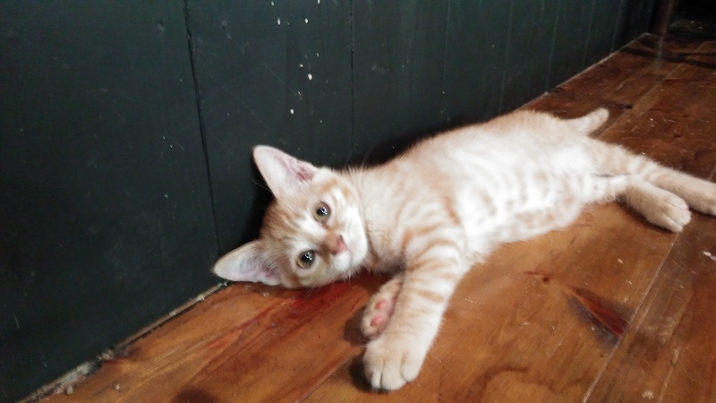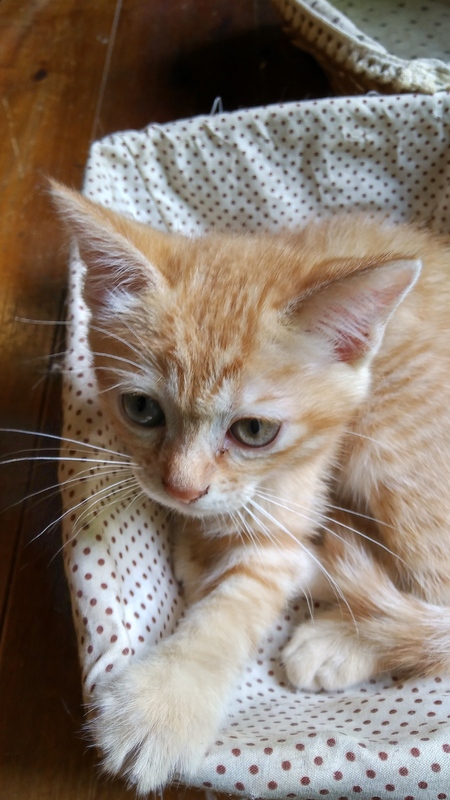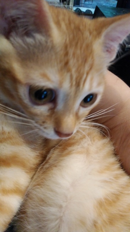 | 特徴(性格など) | とても元気です。食欲旺盛で、ご飯を食べる時には(うにゃうにゃ)とよくしゃべる子猫です。 茶トラでは、少し珍しい女の子です。 誰が来ても、大人しく、抱っこさせてくれます。 爪も苦になく切らせてくれます。 |
