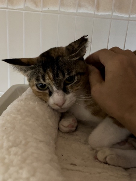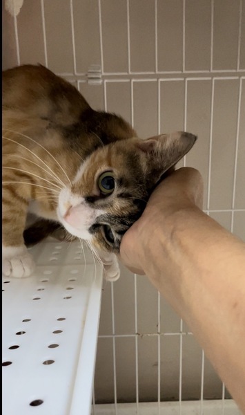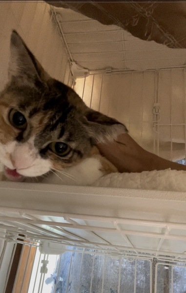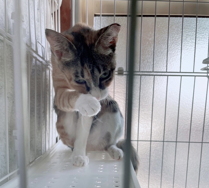 | 特徴(性格など) | <初期医療> 健康状態:良好 ウイルス検査:陰性 ワクチン接種:済み(8月17日) ノミダニ駆除薬:済み 糞便検査:済み 避妊手術:済み とても可愛い三毛猫女の子です。 フードもよく食べ、トイレもバッチリです。 ナデナデが大好きで大人しく、抱っこ練習中です。 初心者のご家族様でもお留守番のあるお家でも大丈夫です。 |